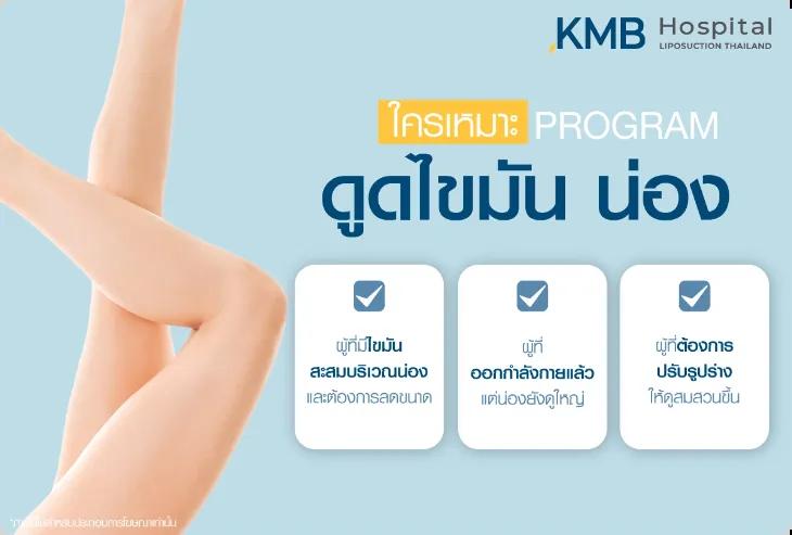 Q: โปรแกรมดูดไขมันน่อง ที่ KMB hospital ราคาเท่าไหร่?
