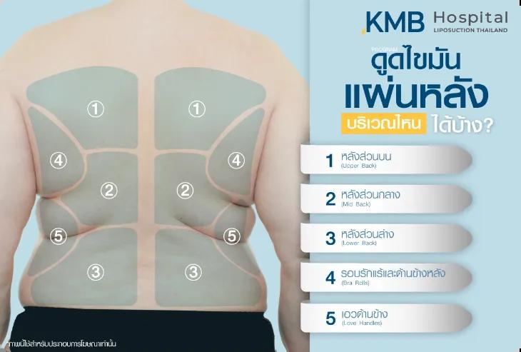 การทำโปรแกรมดูดไขมันแผ่นหลังเป็นหนึ่งในหัตถการที่ช่วยปรับรูปร่างให้ดูสมส่วนมากยิ่งขึ้น โดยเฉพาะสำหรับผู้ที่มีไขมันสะสมเฉพาะจุด ซึ่งยากต่อการกำจัดด้วยวิธีธรรมชาติ เช่น การออกกำลังกายหรือควบคุมอาหาร โดยที่ KMB Hospital โดยหมอลูกหนู การทำโปรแกรมดูดไขมันบริเวณหลังจะเน้นความปลอดภัยและผลลัพธ์ที่ดูเป็นธรรมชาติ โดยบริเวณที่สามารถทำโปรแกรมดูดไขมันได้ มีดังนี้