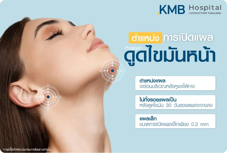 โปรแกรมดูดไขมันของ KMB Hospital คุณหมอลูกหนู มีจุดเด่นที่การใช้ แผลเล็ก ซ่อนแผล ช่วยลดความกังวลเรื่องรอยแผล ตำแหน่งในการเปิดแผล พิจารณาจากสรีระและสภาพผิวของผู้เข้ารับบริการเป็นหลัก