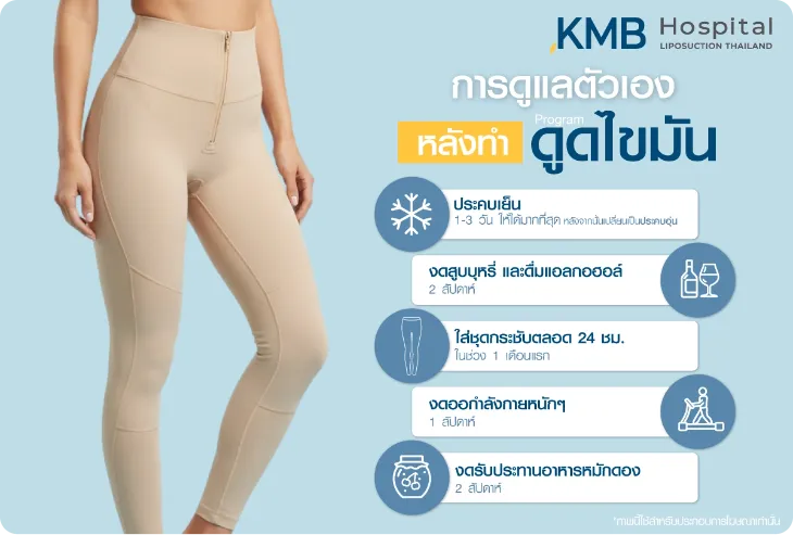 การใส่ชุดกระชับช่วยลดบวม กระชับผิว และทำให้ขาเข้ารูปเร็วขึ้น ใส่ต่อเนื่องตามคำแนะนำของแพทย์ จะได้ผลลัพธ์ที่ดีขึ้น - ออกกำลังกายเบาๆ กระตุ้นการไหลเวียนเลือด
